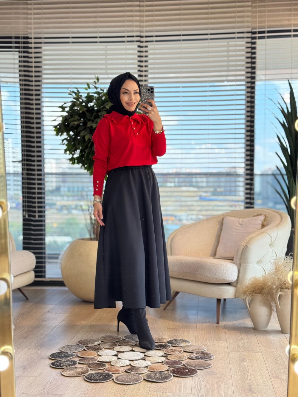 260 Dantelli Bebe Yaka Triko Tunik Kırmızı
