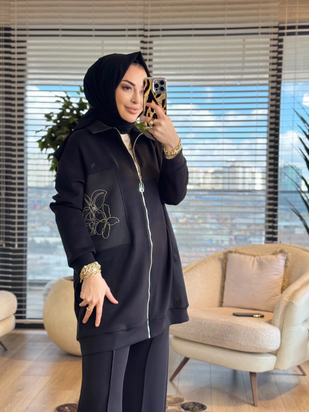 26YT601 Sol Taraf Zincir Detay Fermuarlı Takım Siyah