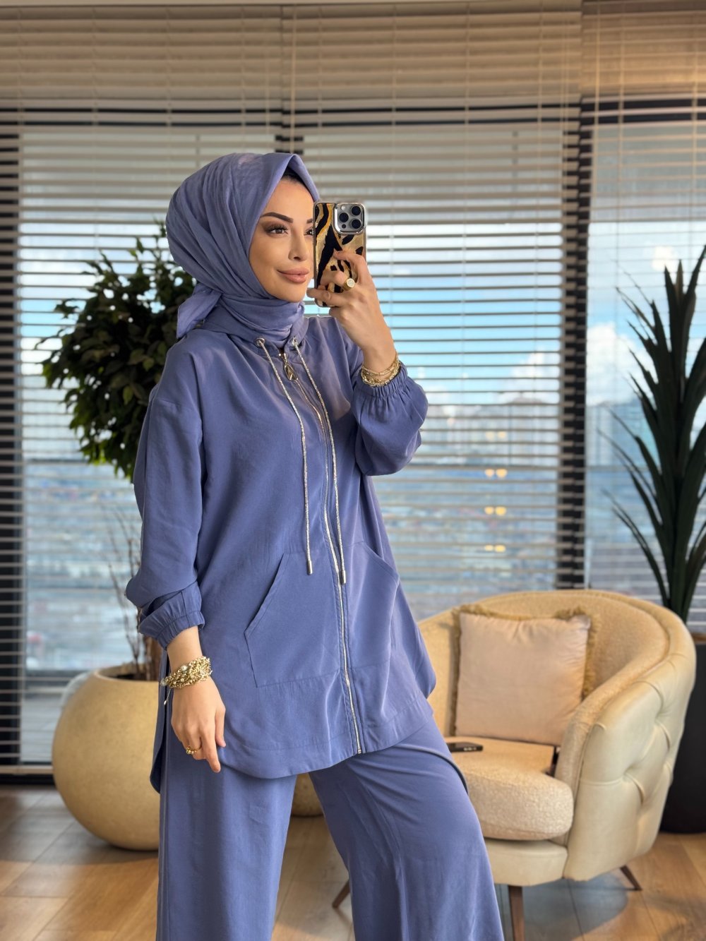 26YT620 Kanguru Cepli Kapşonlu Takım İndigo