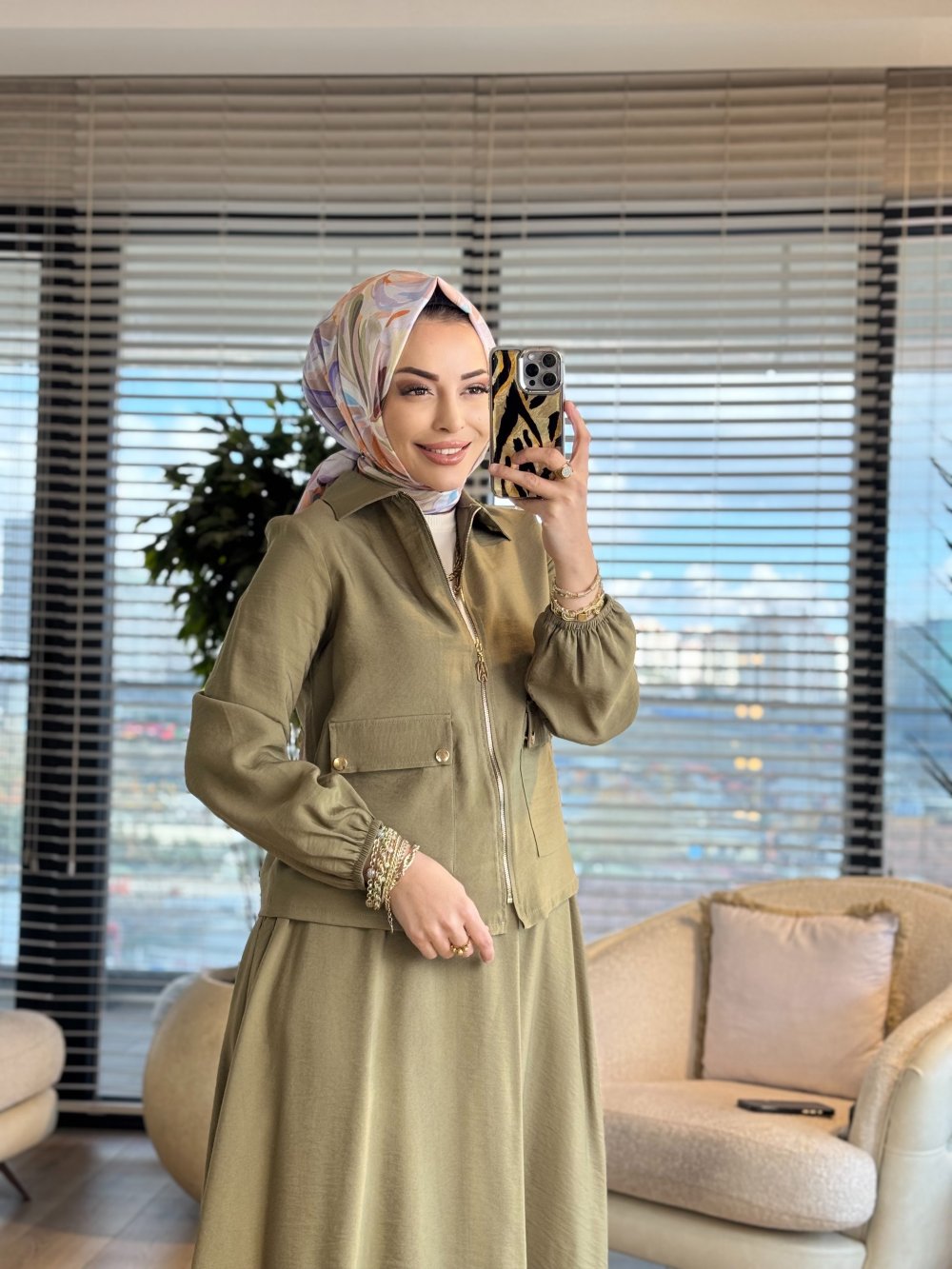 26YT621 Ön Cep Ve Fermuarlı Etekli Takım Haki