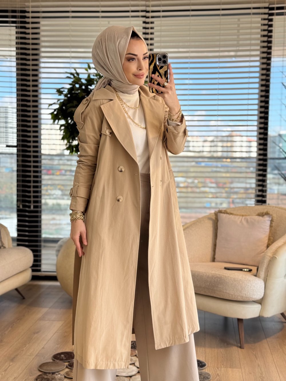 26YT707 Dört Düğme Apoletli Trenç Bej