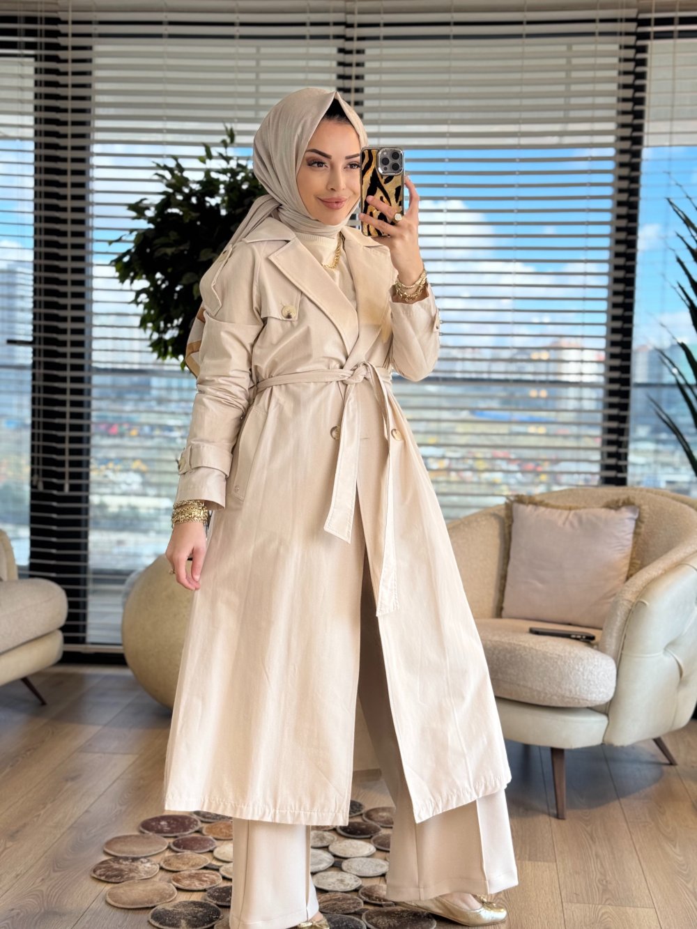 26YT707 Dört Düğme Apoletli Trenç Bej