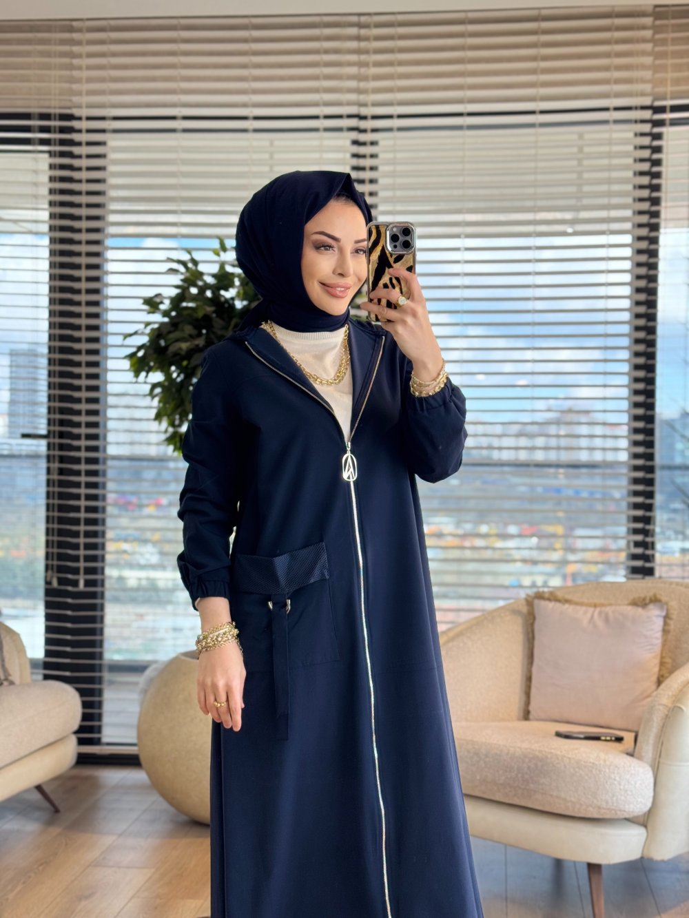 26YT801 Cep Ve Kapşonu File Detaylı Kap Lacivert