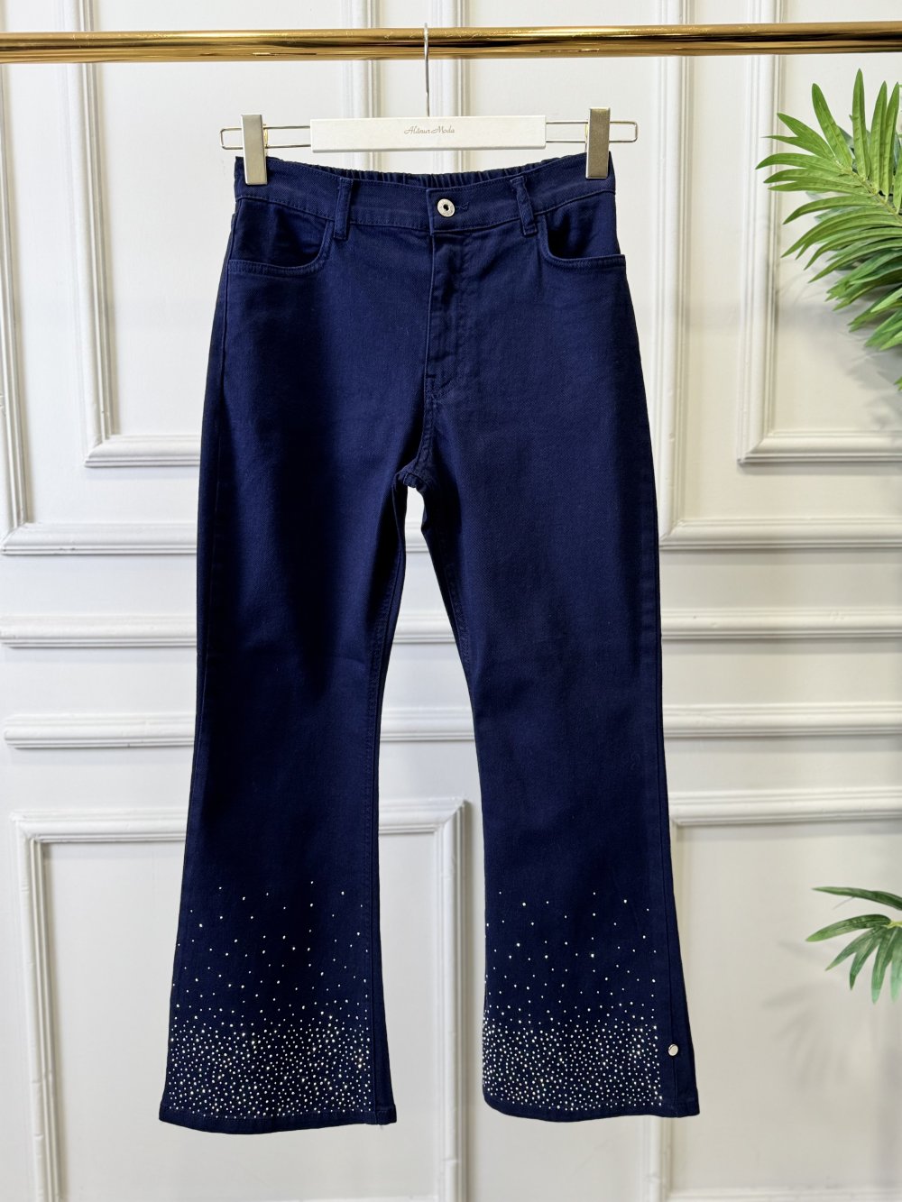 2802 Kot Paçası Serpme Taşlı Pantolon Koyu Lacivert