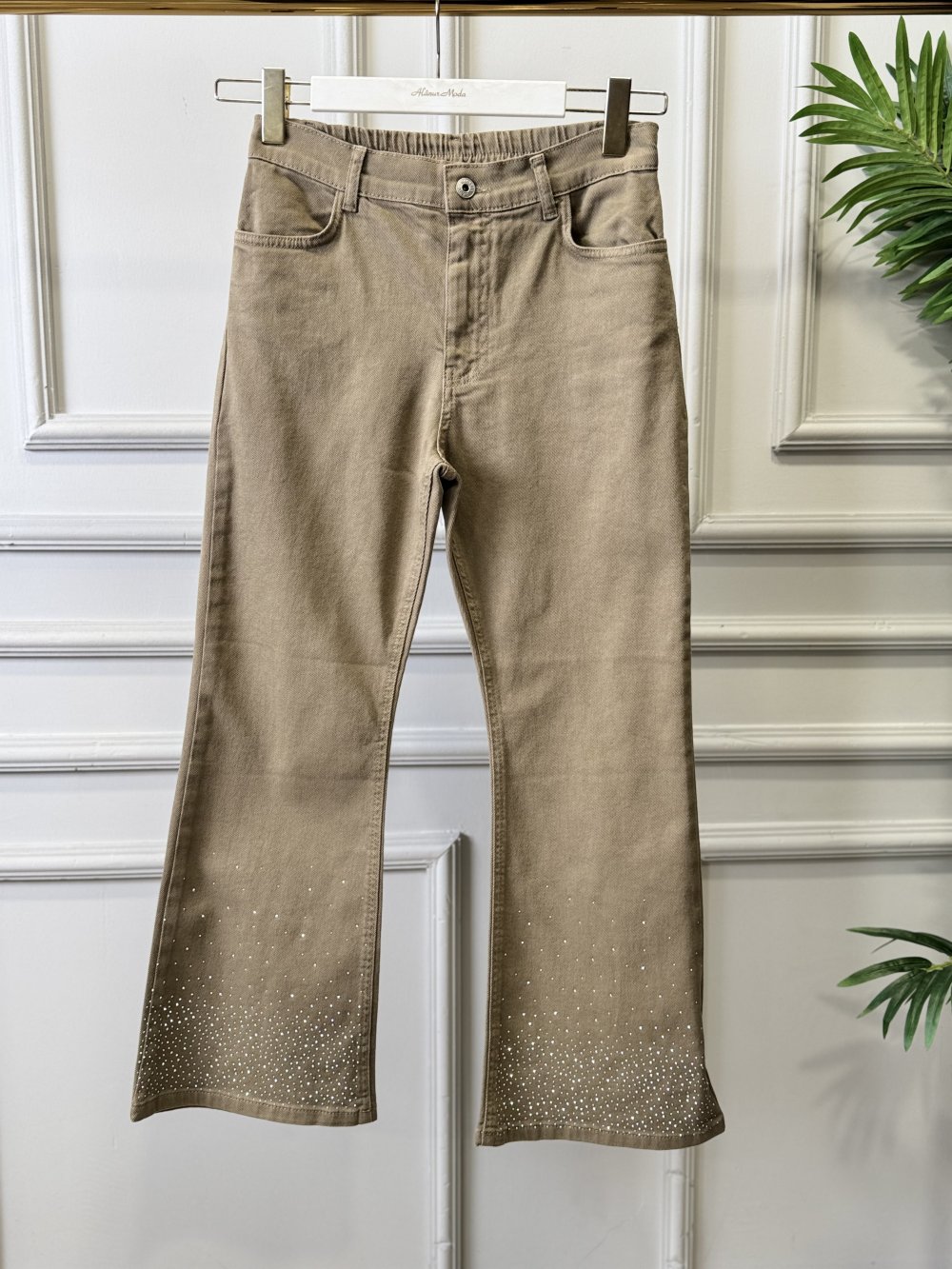 2802 Kot Paçası Serpme Taşlı Pantolon Vizon