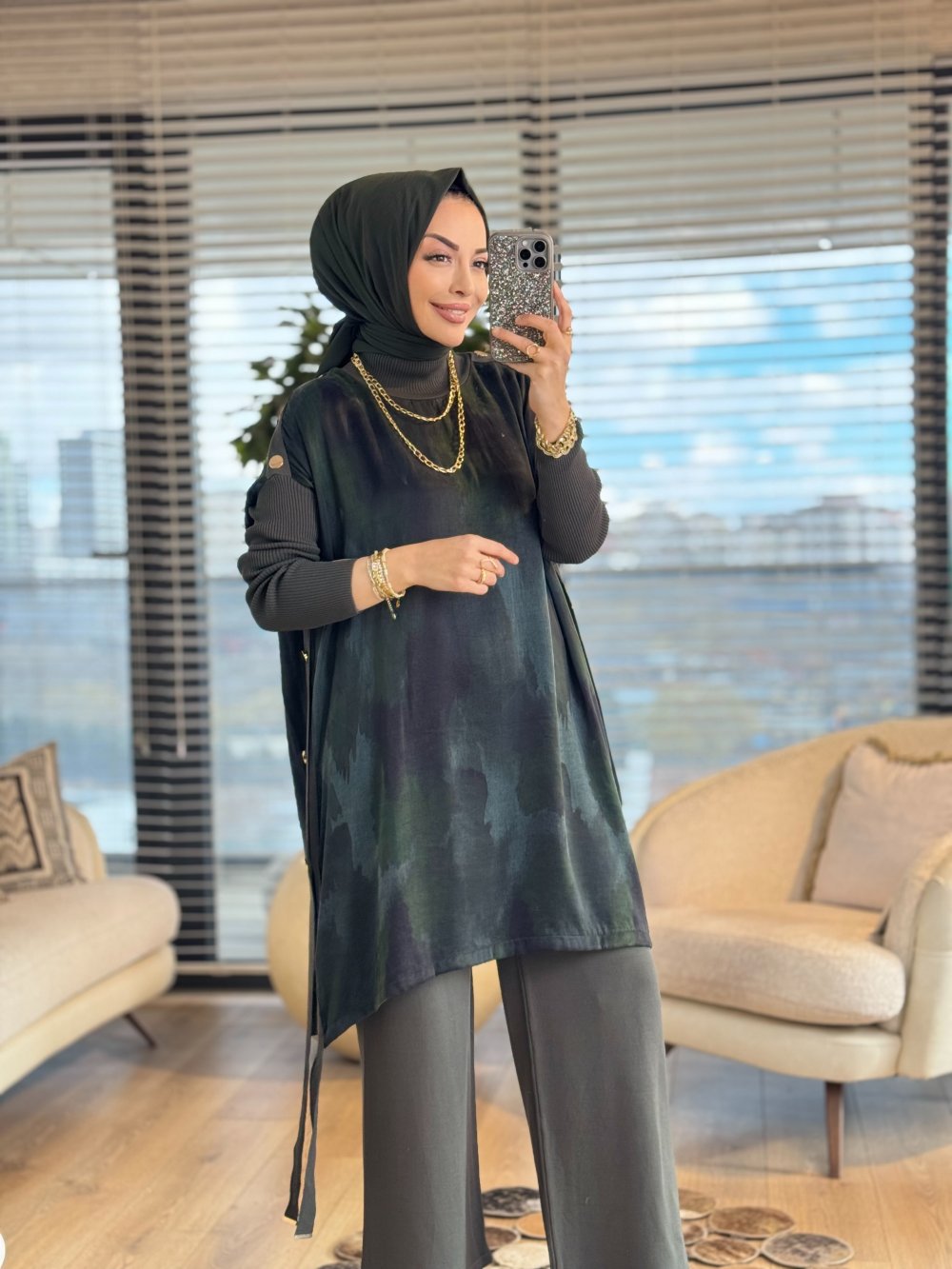 283 Kupra Omuz Ve Yanları Düğmeli Triko Tunik Haki