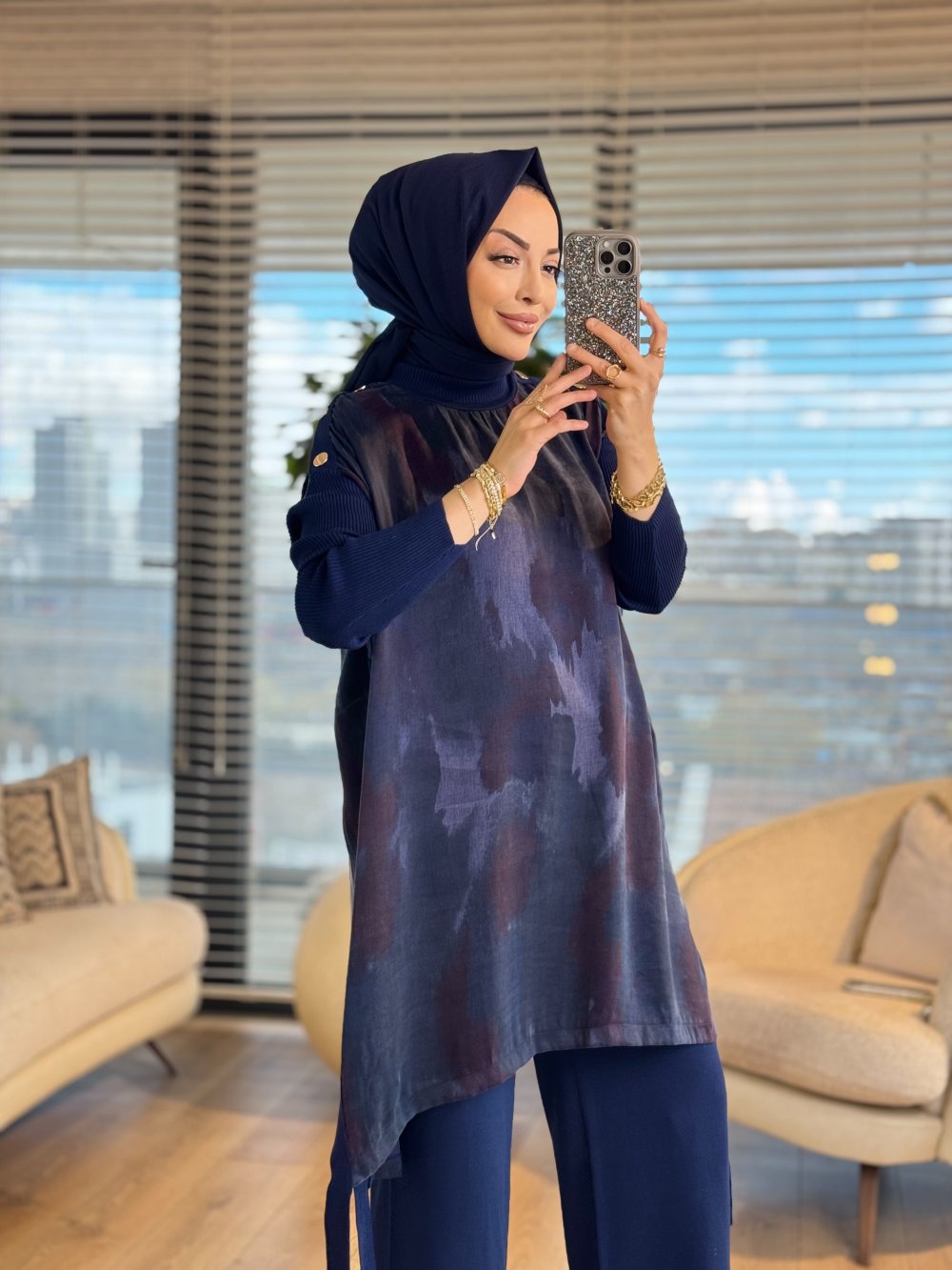 283 Kupra Omuz Ve Yanları Düğmeli Triko Tunik Lacivert