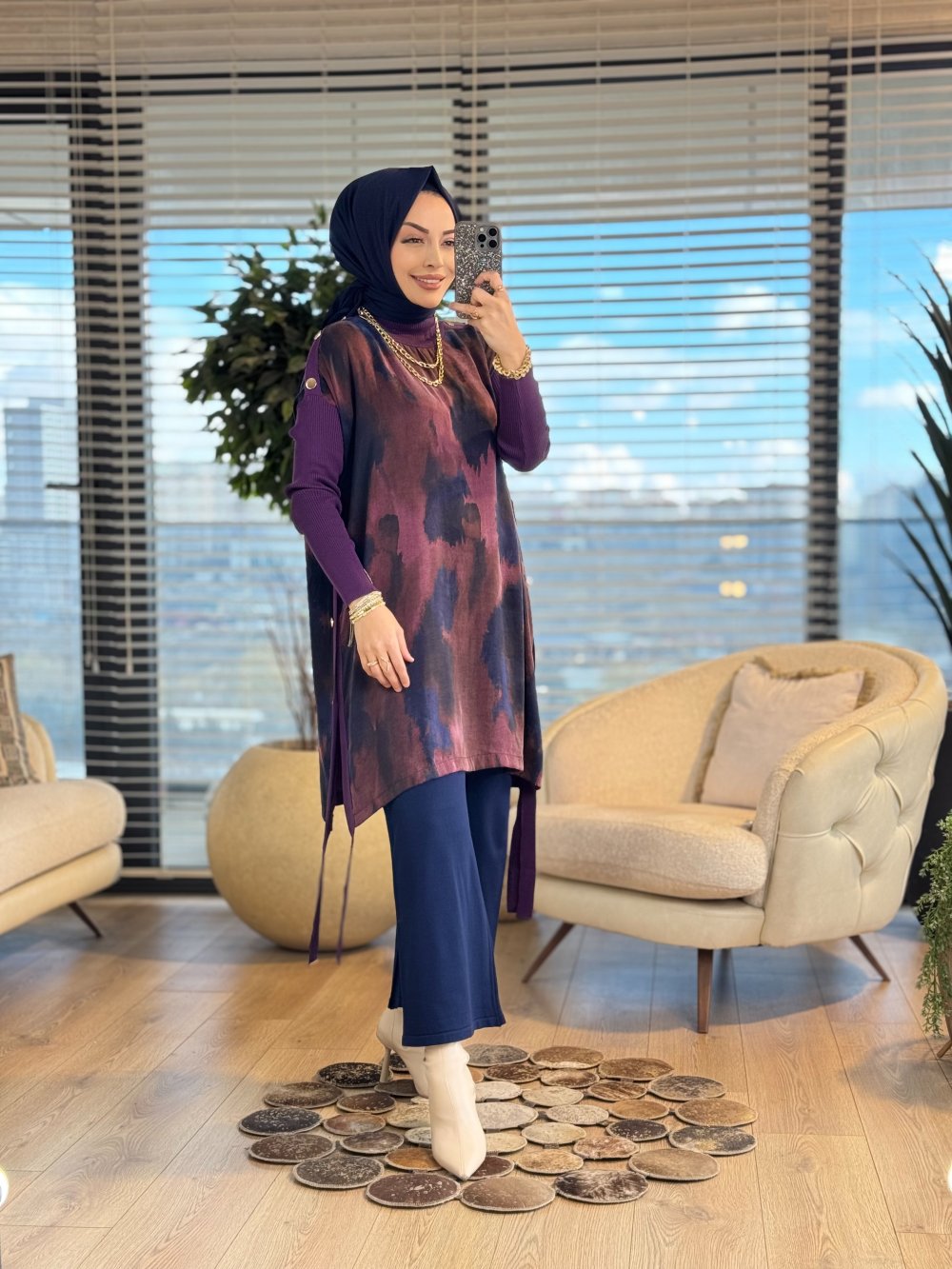 283 Kupra Omuz Ve Yanları Düğmeli Triko Tunik Mürdüm