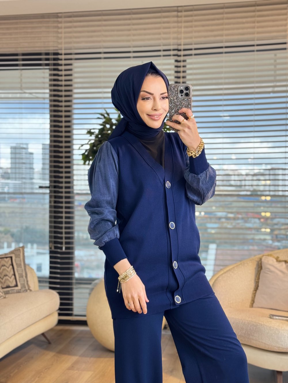 288 Kupra Kumaş Kol Hırka Lacivert
