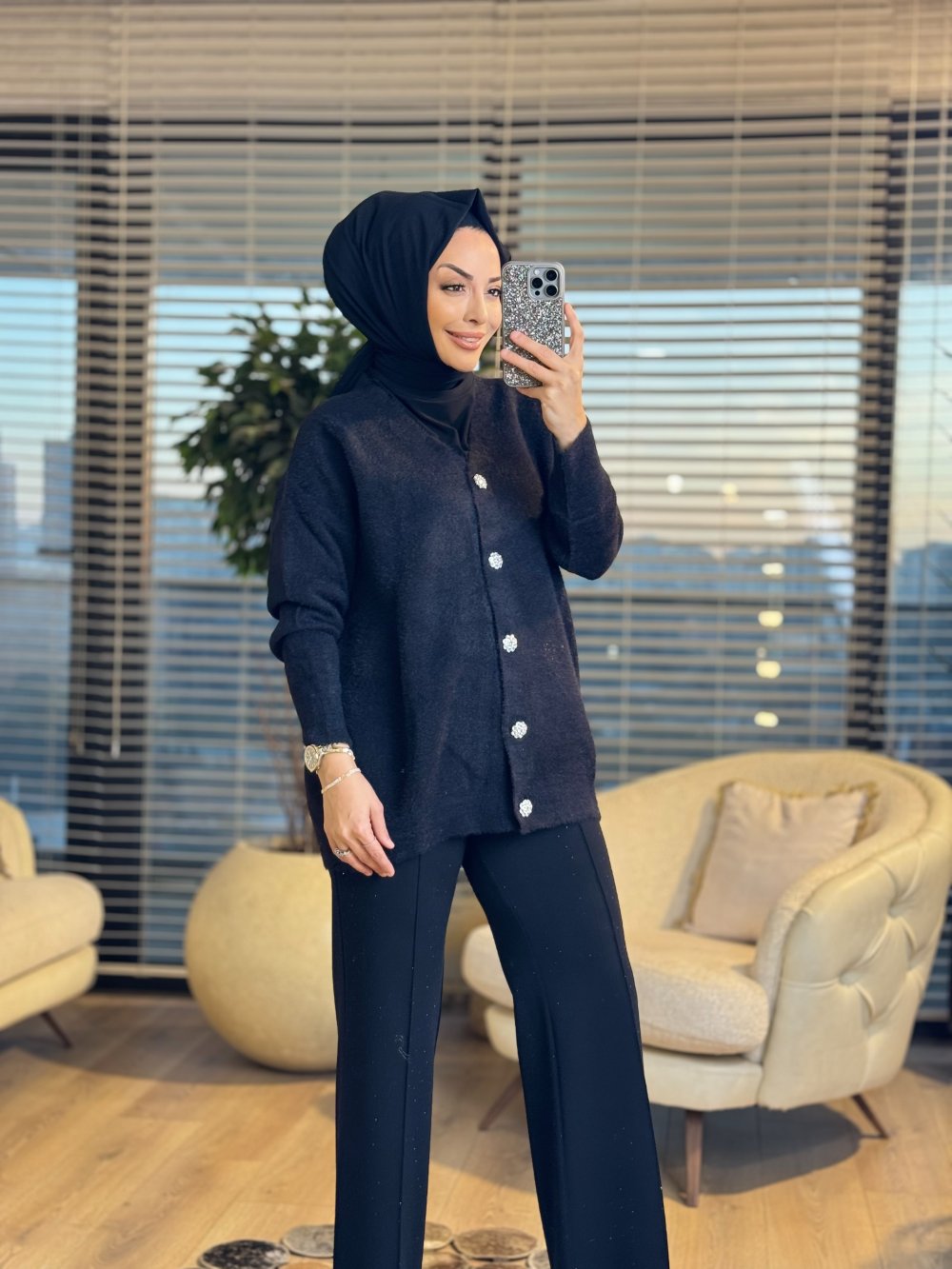 2957 Sakal V Yaka Hırka Siyah