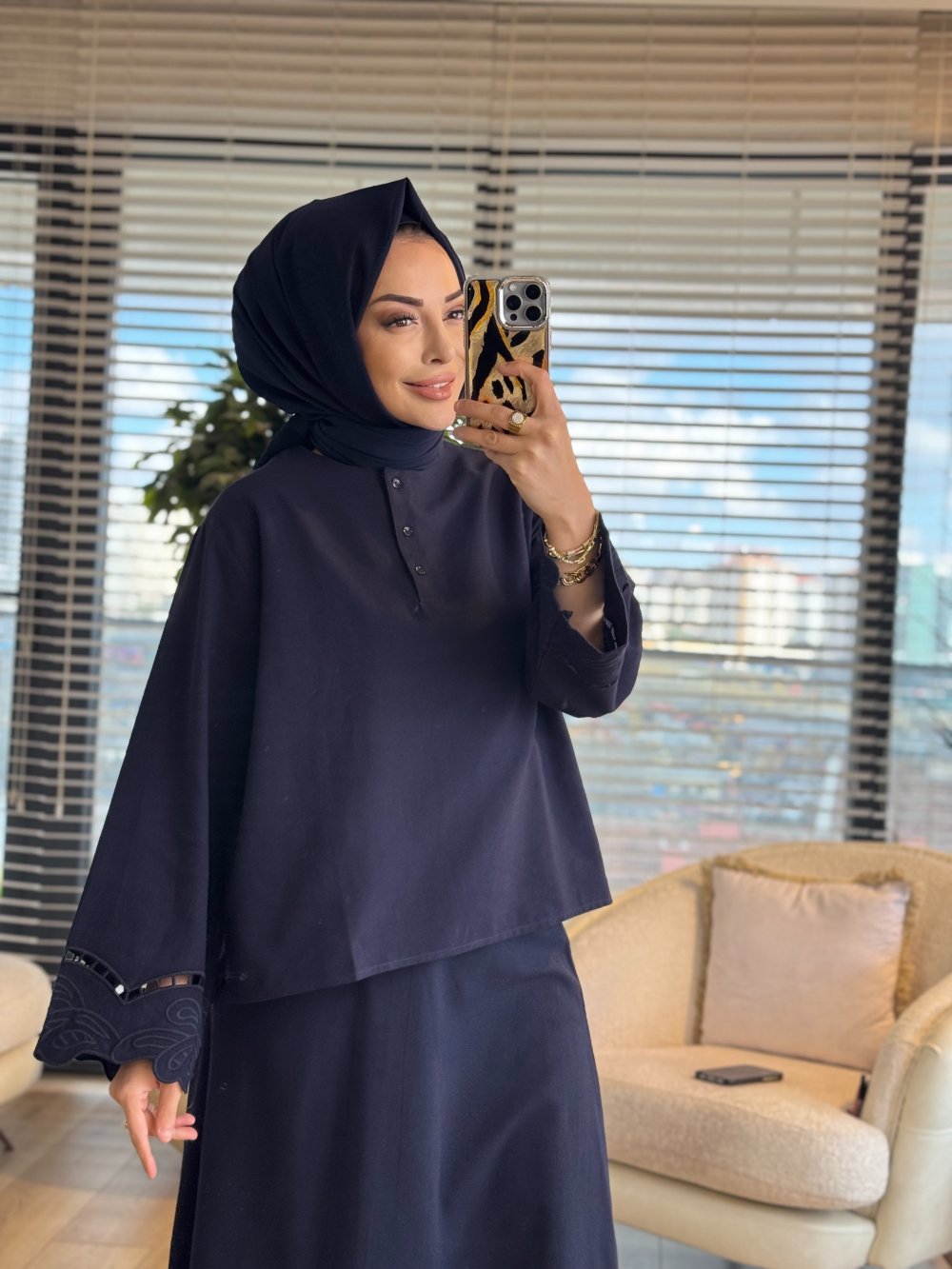 2973 Nakış Detaylı Etekli Takım Lacivert