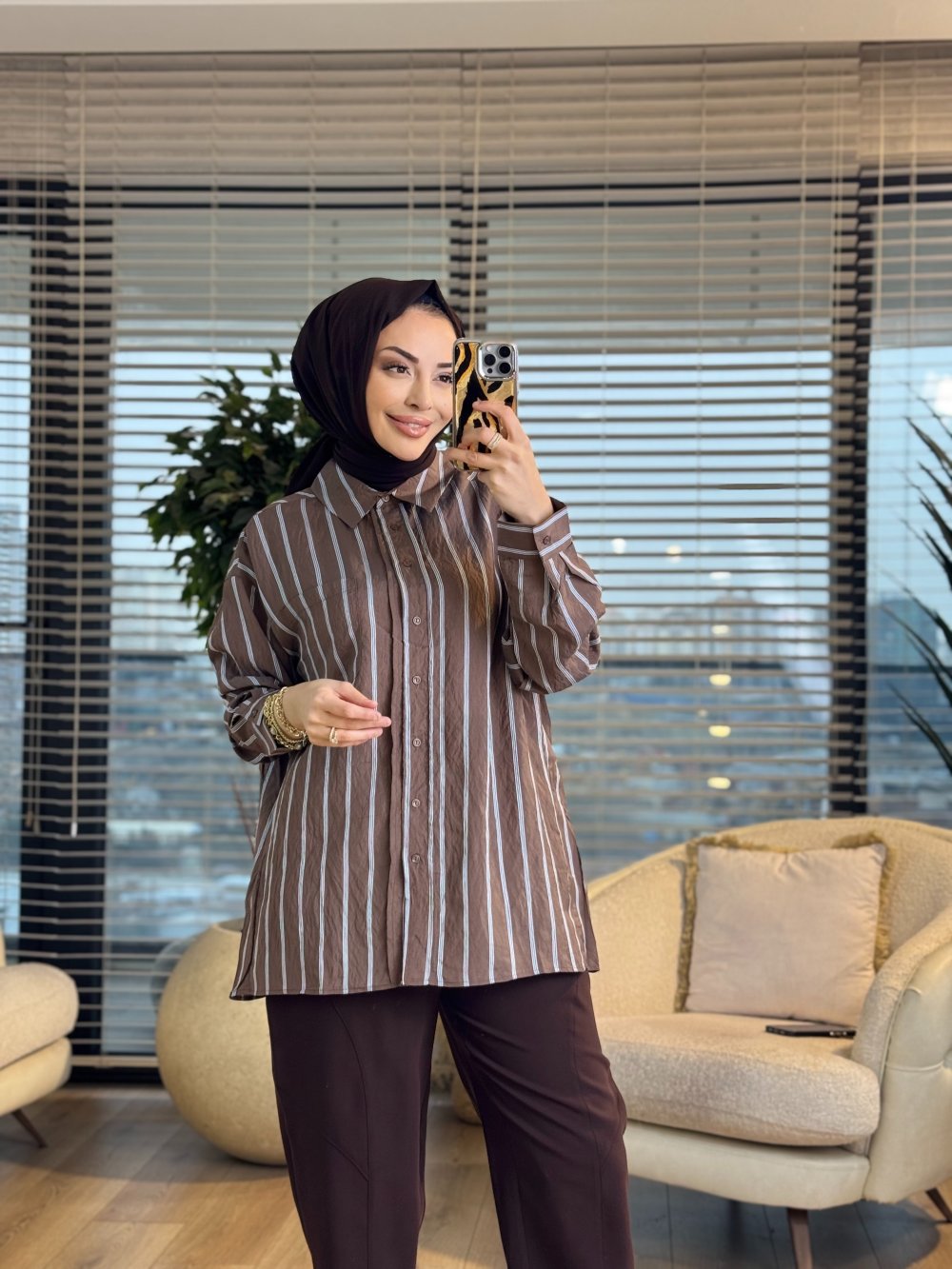3005 Arkası Pile Detaylı Gömlek Kahve