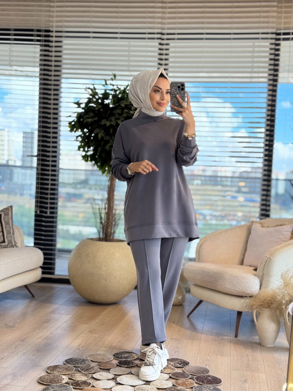 3055 Sağ Omuzu Taş Ve Fermuar Detaylı Takım Antrasit
