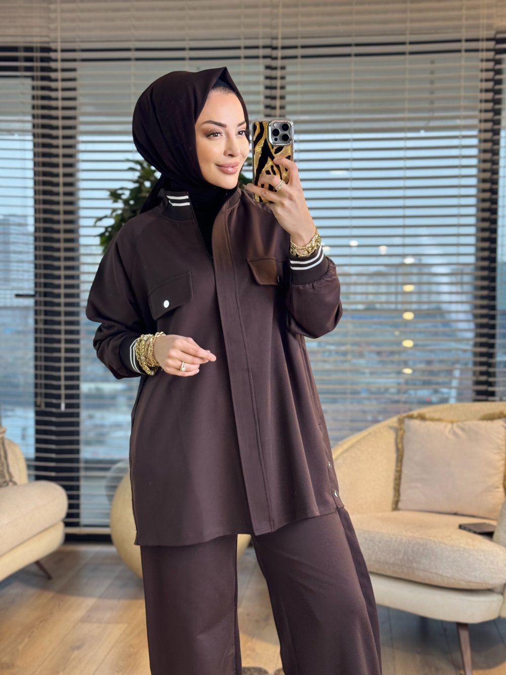 3075 Çıtçıt Ve Triko Detaylı Takım Kahve