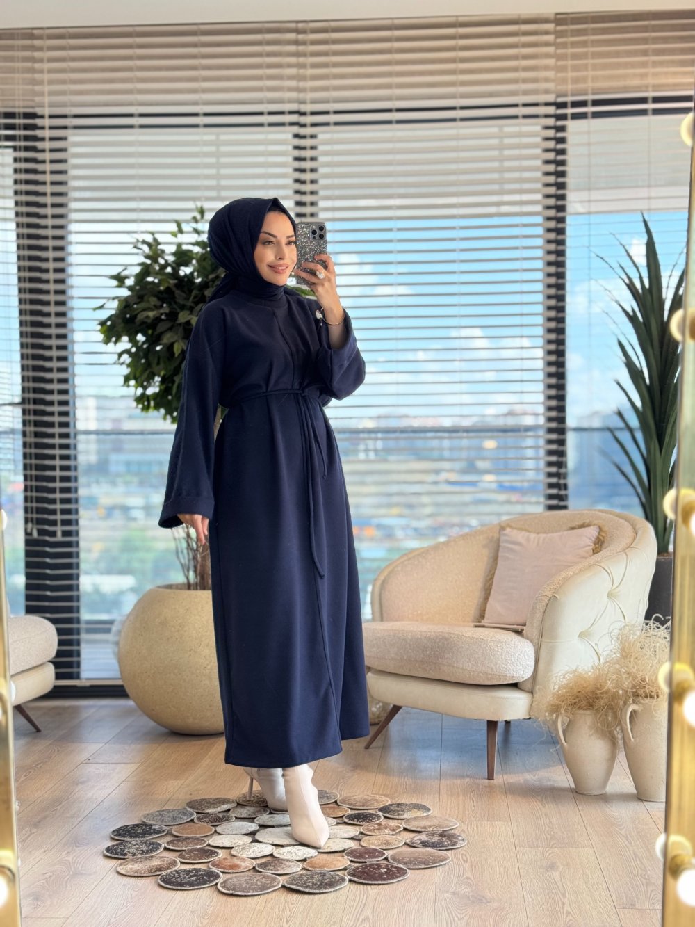 3108 Dikiş Detaylı Dokulu Elbise Lacivert