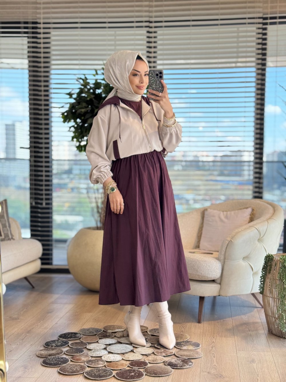 32146 Kapşonlu İkili Takım Elbise Mürdüm
