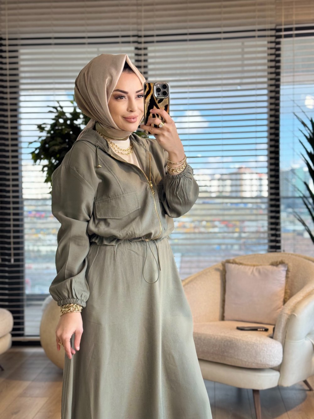 3236 Cep Detaylı Etekli Takım Haki