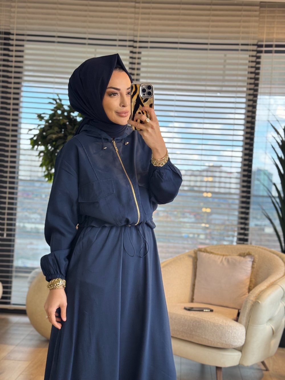 3236 Cep Detaylı Etekli Takım Lacivert
