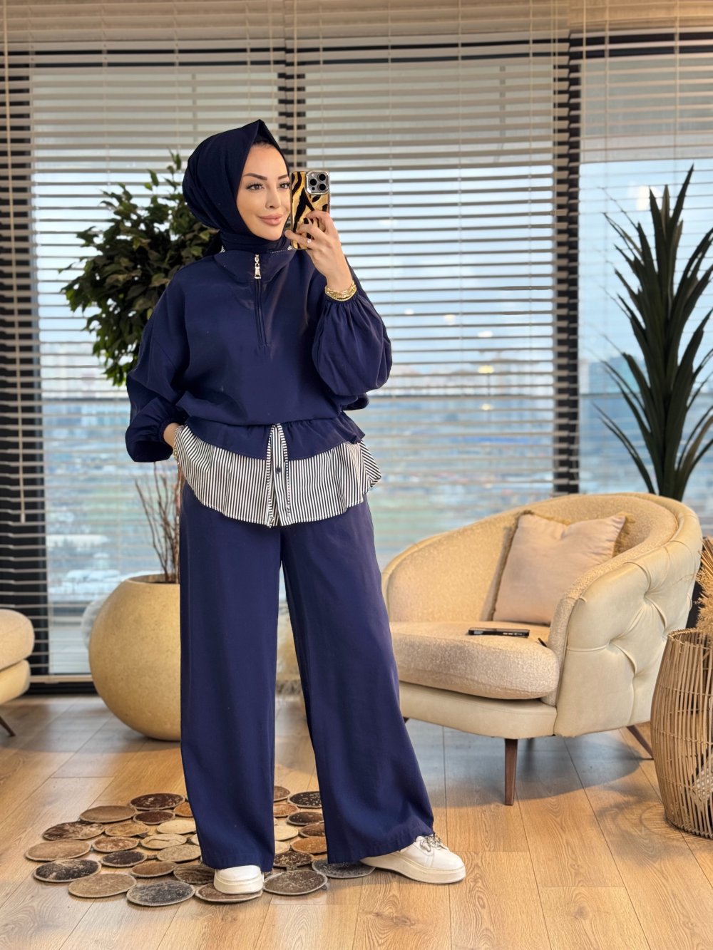 32462 Yaka Ve Baseni Çizgi Parçalı Pantolon Takım Lacivert