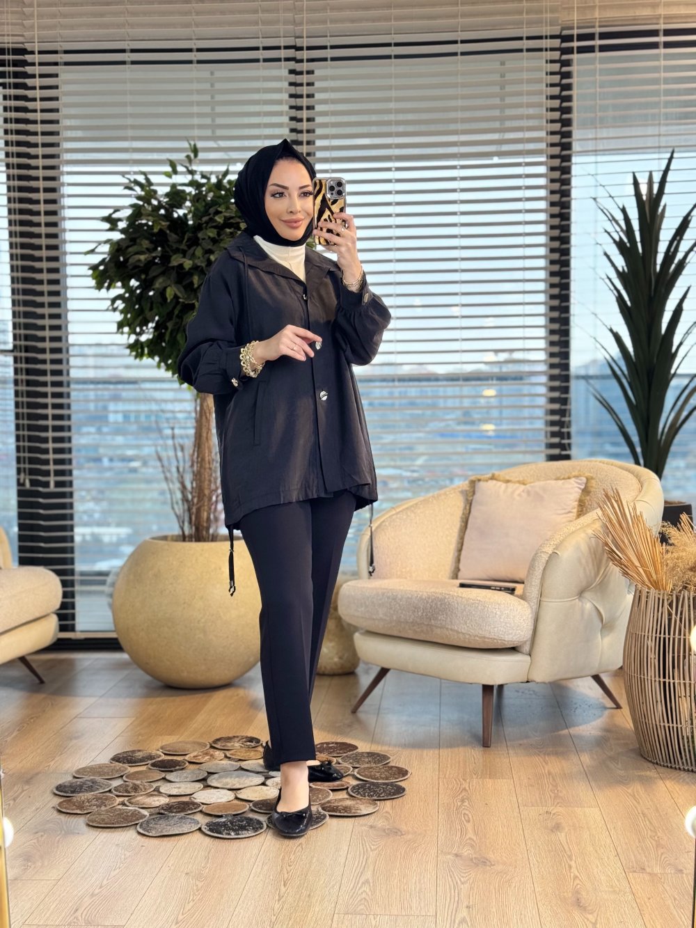 3291 Arkası Aller Detaylı Bağcıklı Ceket Siyah
