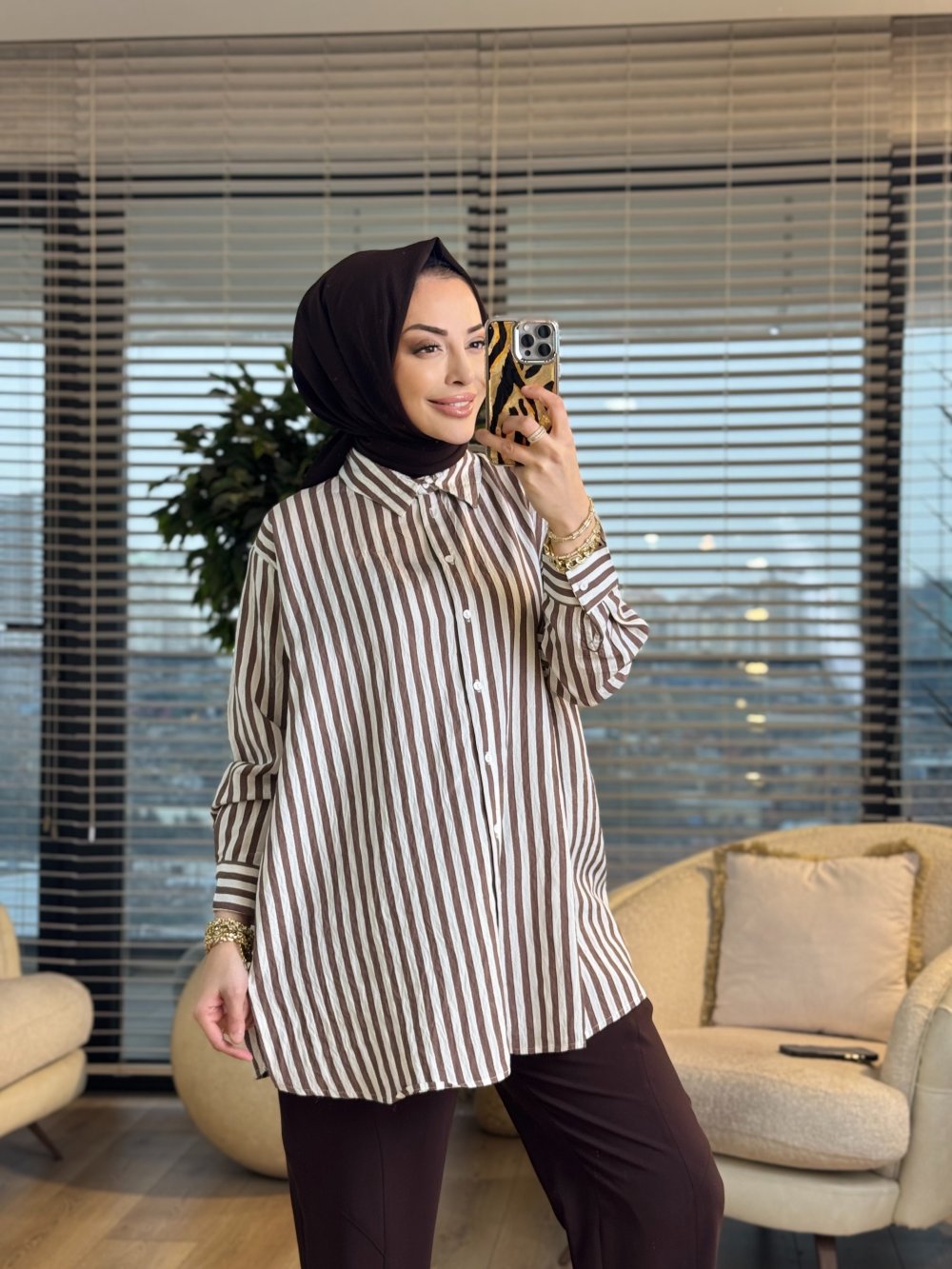 3311 Simli Kalın Çizgili Gömlek Kahve