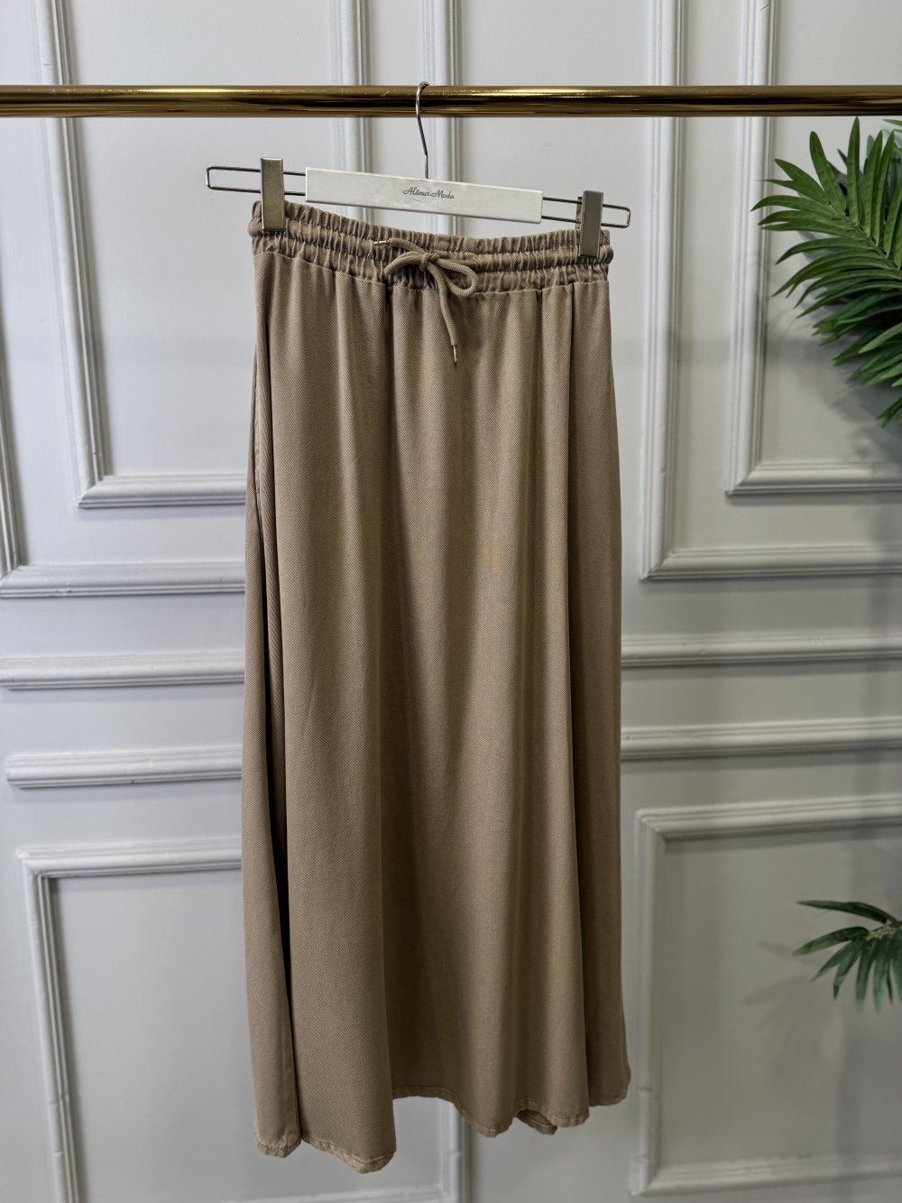 3322 Tencel Beli Lastikli Kloş Etek Vizon