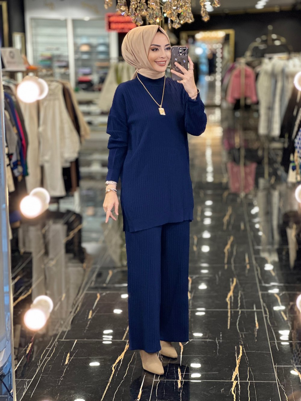 3444 Nopen Fitilli Triko Pantolon Takım Lacivert