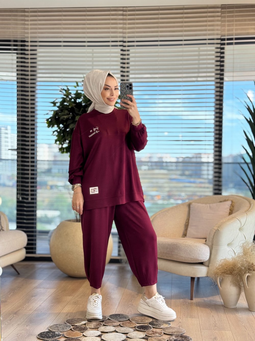 35097 Yüksek Baskı Ve Etiket Detaylı Takım Bordo