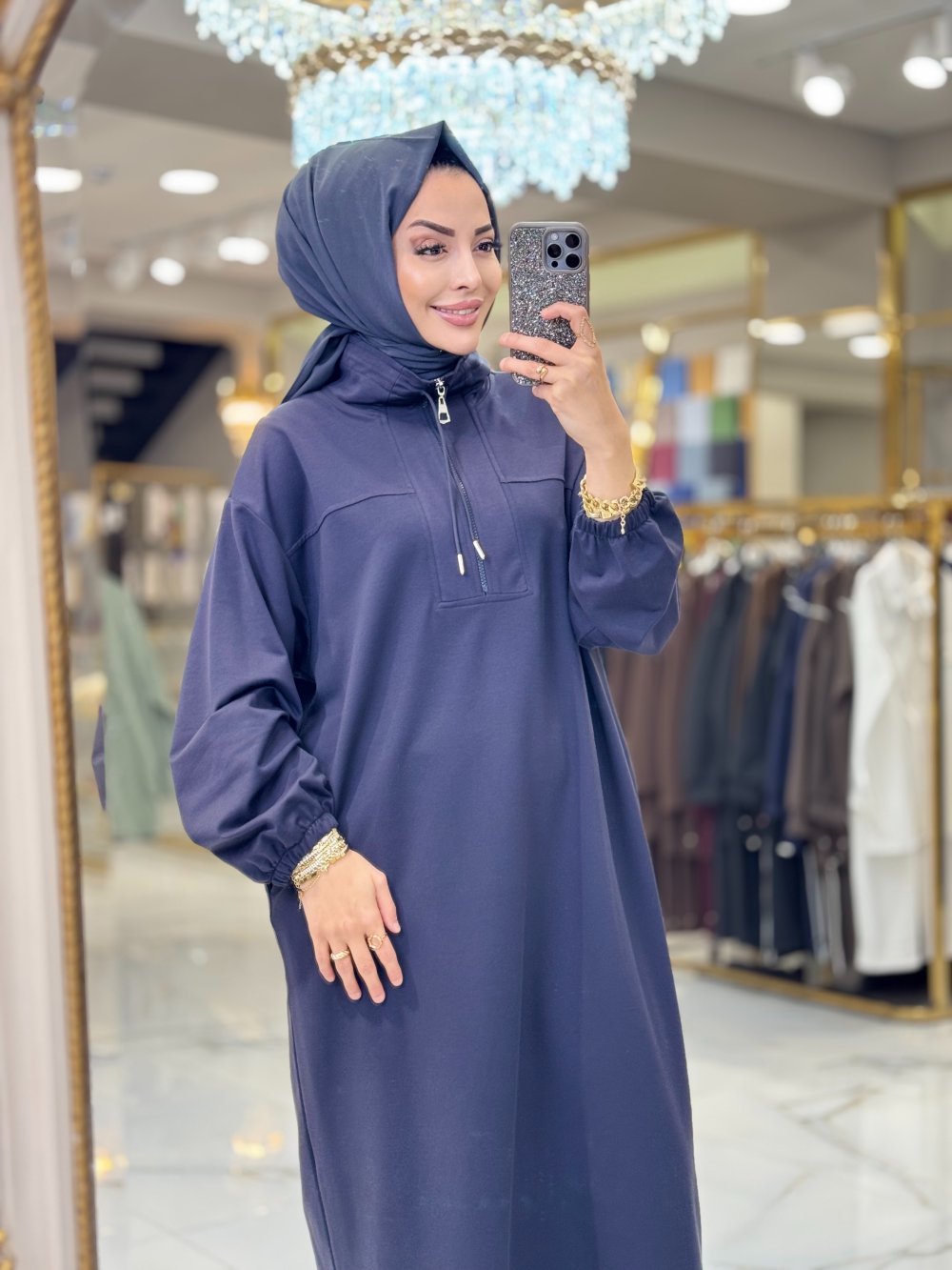 35742 Yüksek Yakalı Kesik Detaylı Elbise Antrasit