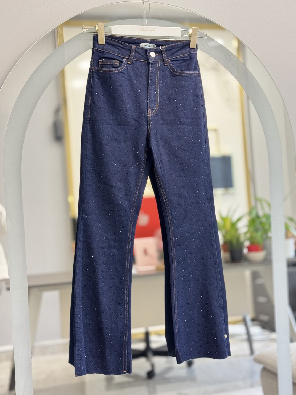 35772 Önü Taşlı Kot Pantolon Lacivert