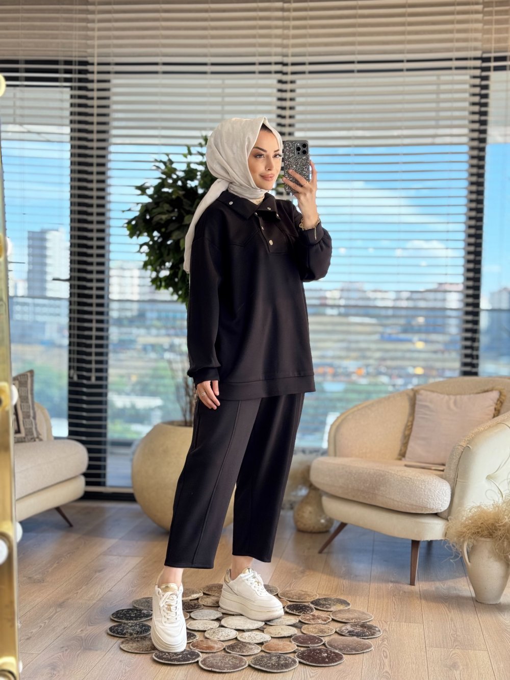 35792 Çıtçıtlı Yüksek Yakalı Takım Siyah
