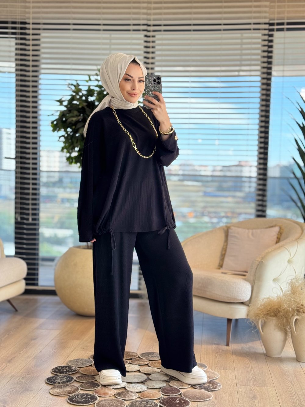 36068 Pile Detaylı Pantolonlu Takım Siyah