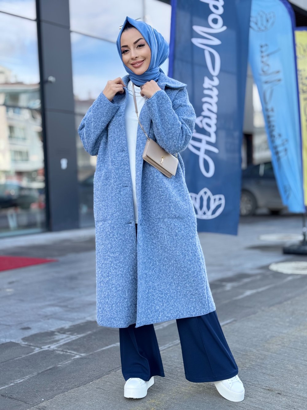 36638 Melanjlı Kaşe Bukle Kaban Mavi