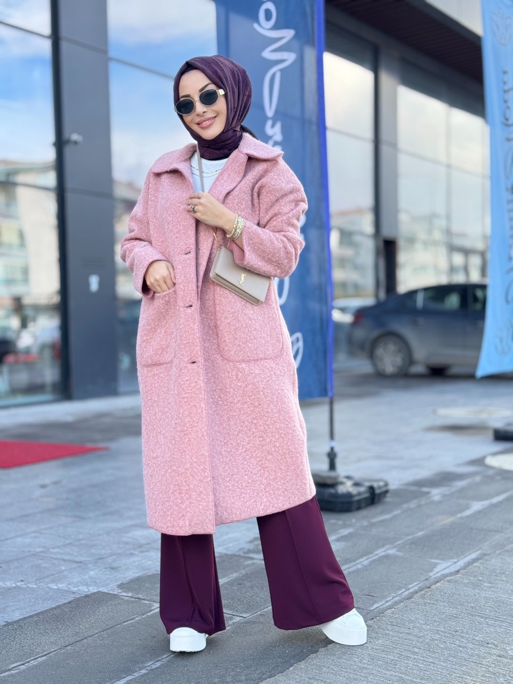 36638 Melanjlı Kaşe Bukle Kaban Pembe