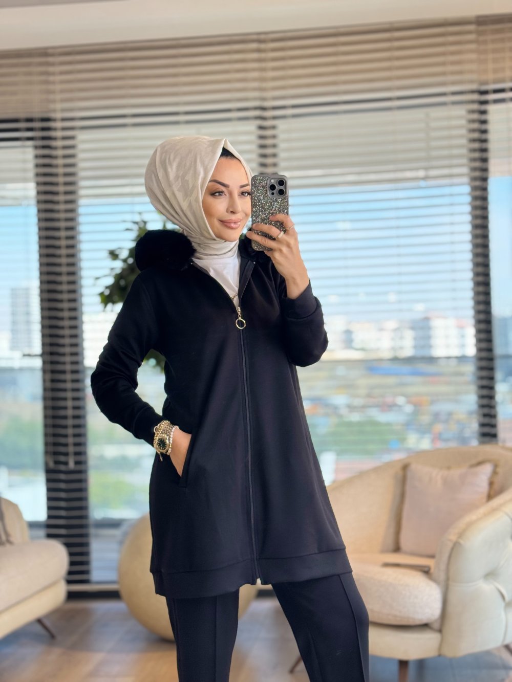 3950 Yaka Kürklü Fermuarlı Takım Siyah