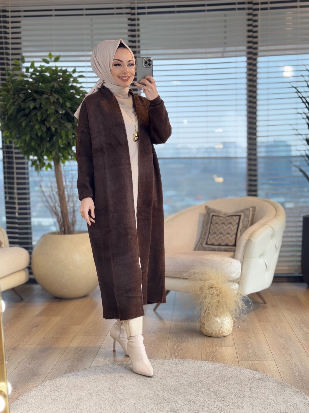4142 Saçak Uzun Hırka Kahve