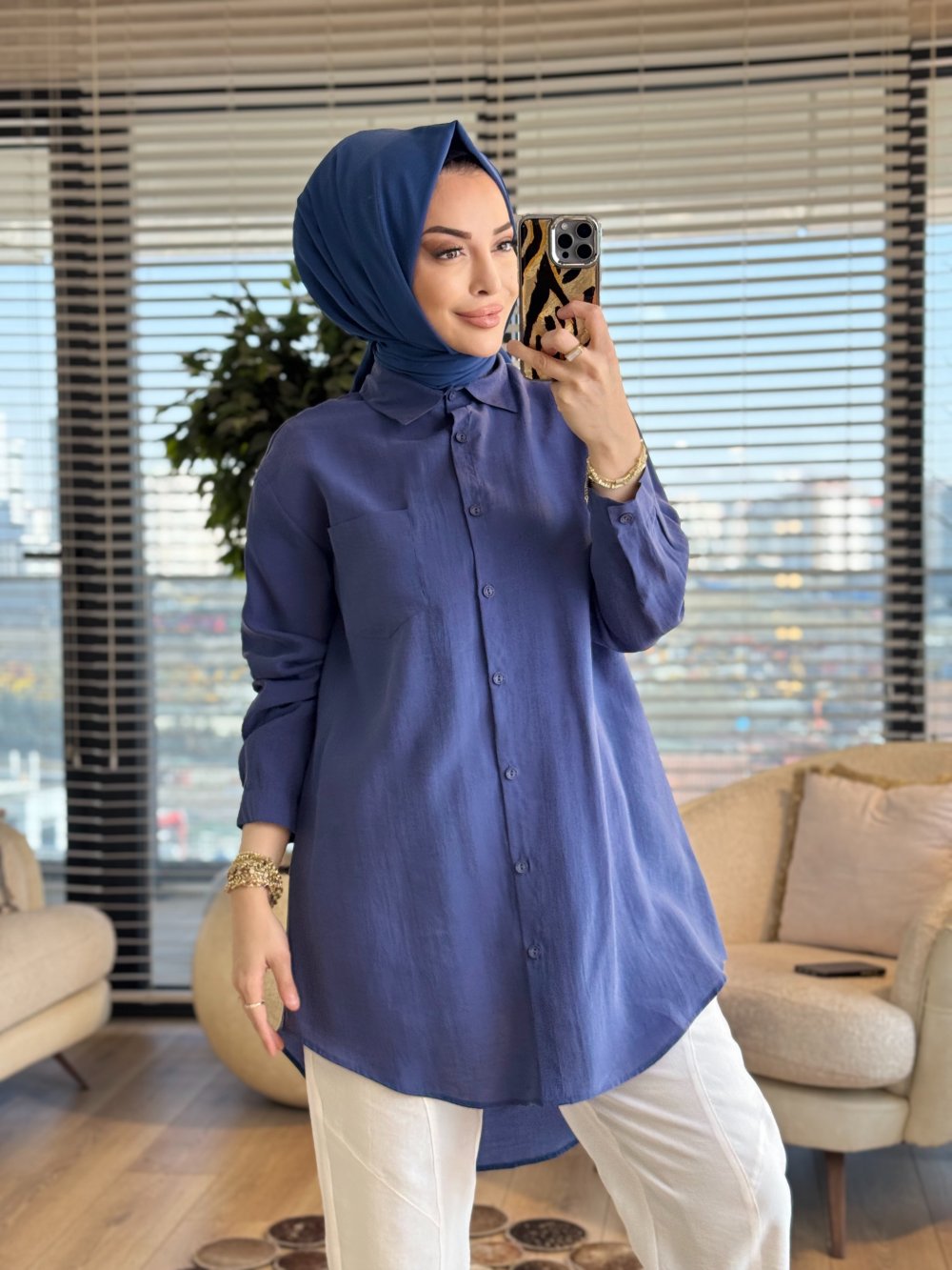 4373 Tek Cepli Gömlek İndigo