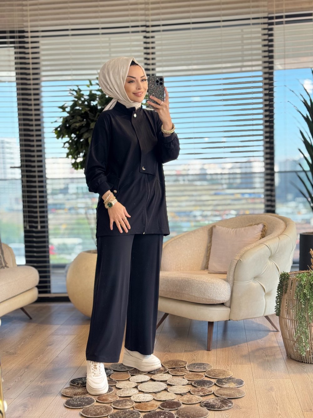 4420 Tencel Patı Çıtçıt Ve Cep Detaylı Takım Siyah