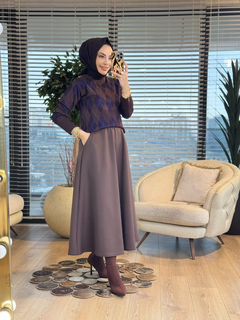 44251 Sim Baklava Desen Triko Kazak Kahve