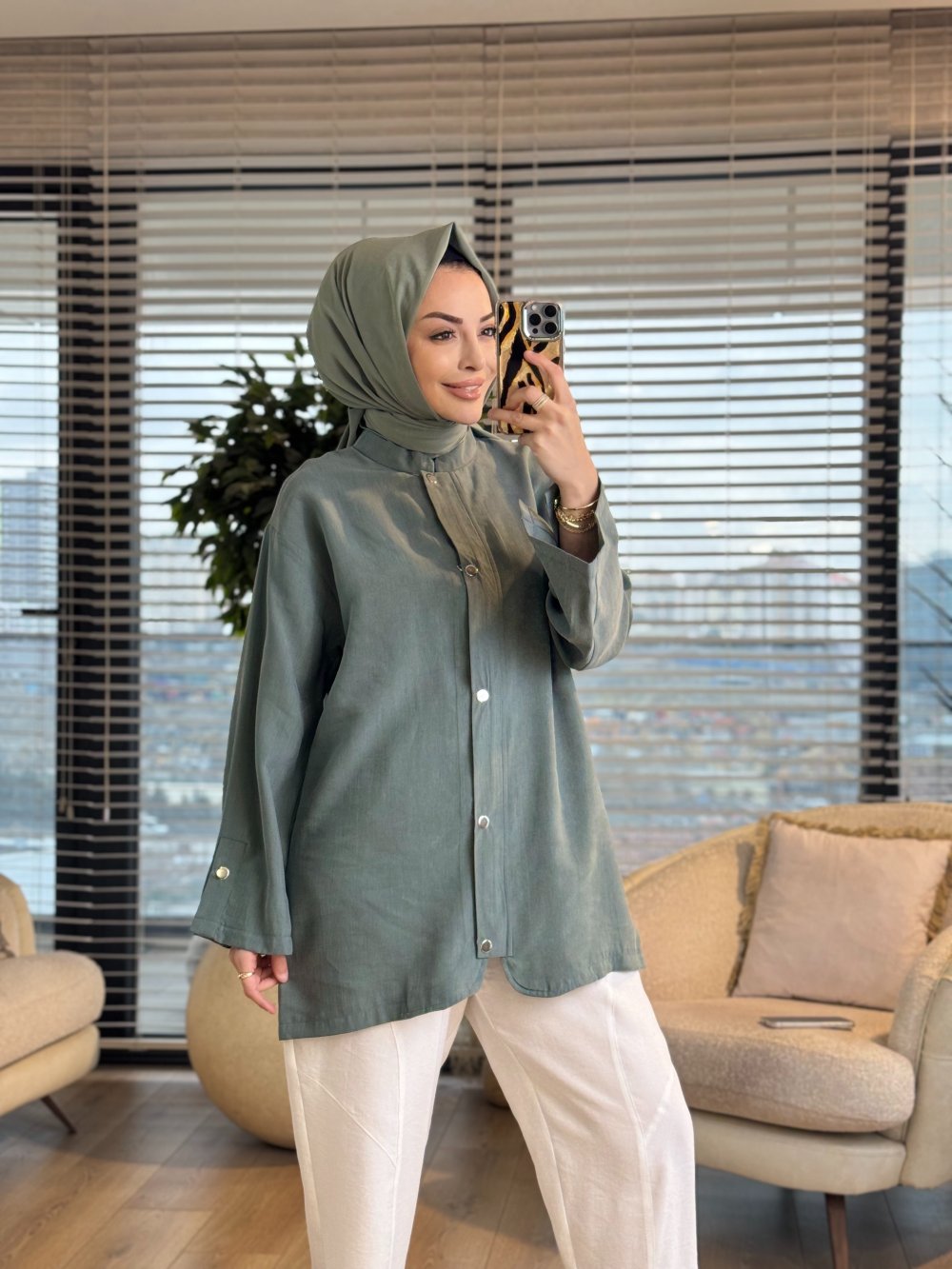 4445 Önü Fermuarlı Yakasız Kap Çağla