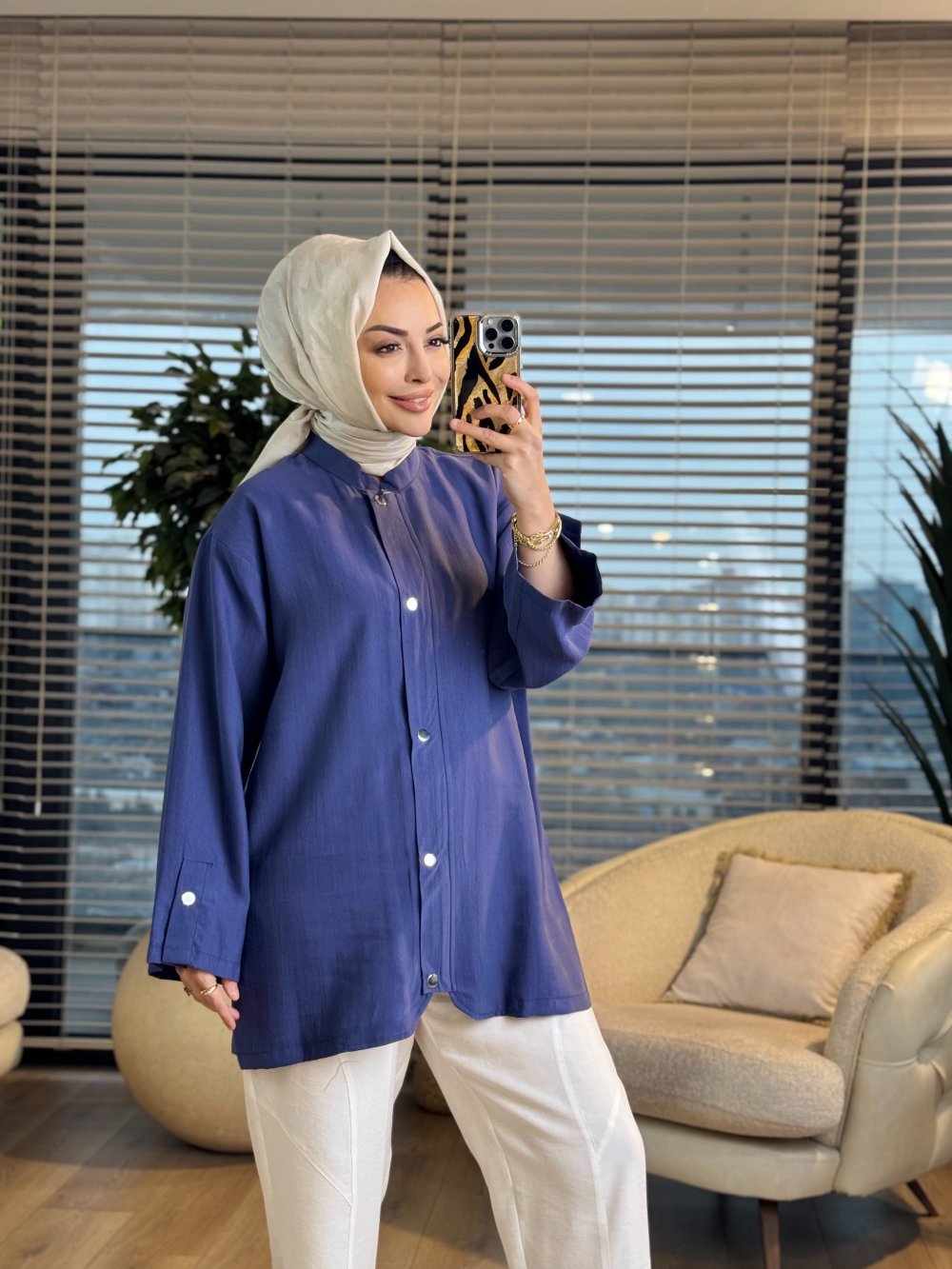 4445 Önü Fermuarlı Yakasız Kap İndigo