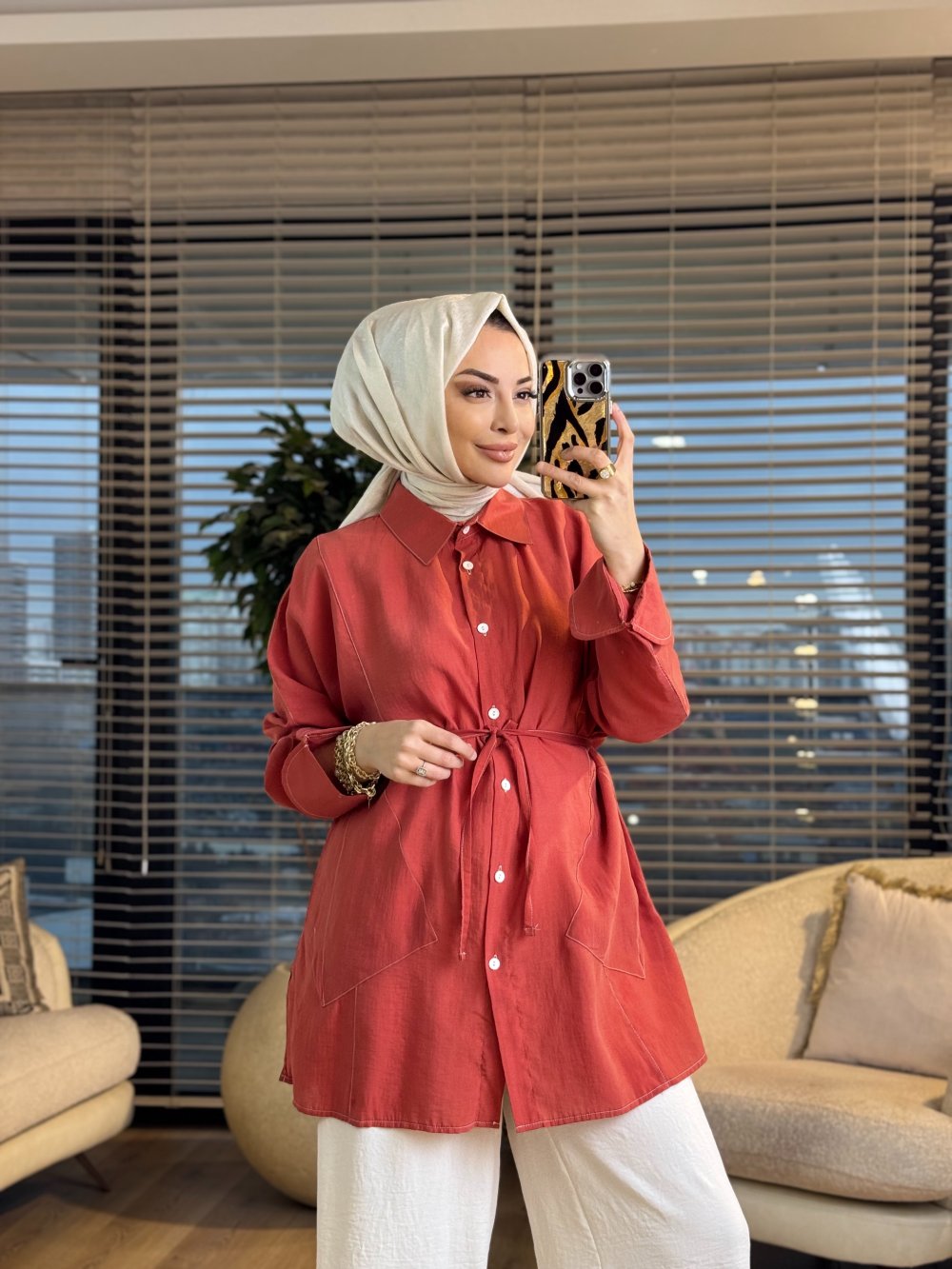 4468 Cepli Kolu Katlamalı Gömlek Kiremit
