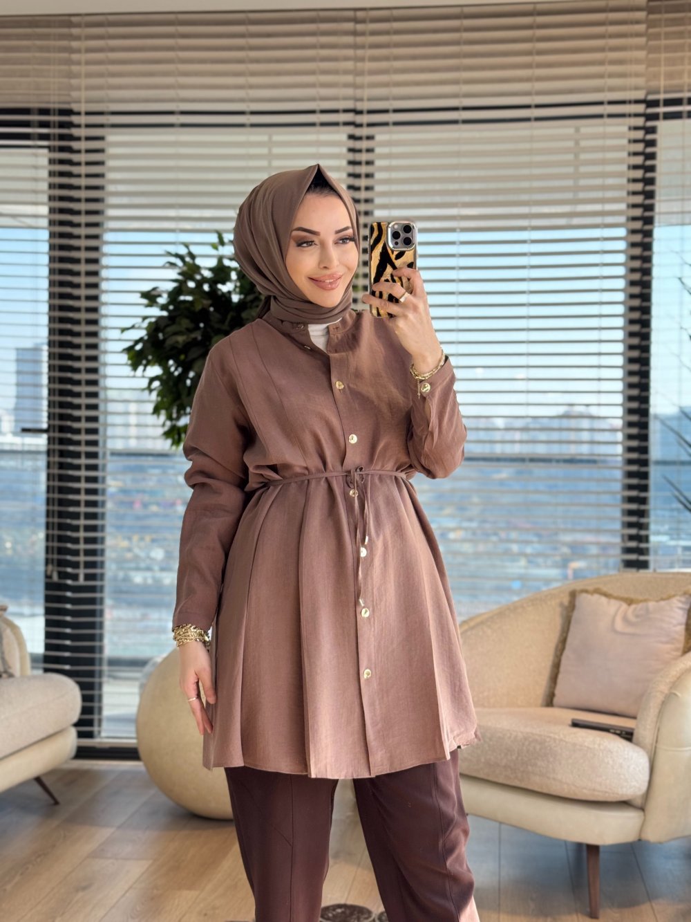 4475 Ön Dikiş Pile Detaylı Tunik Vizon