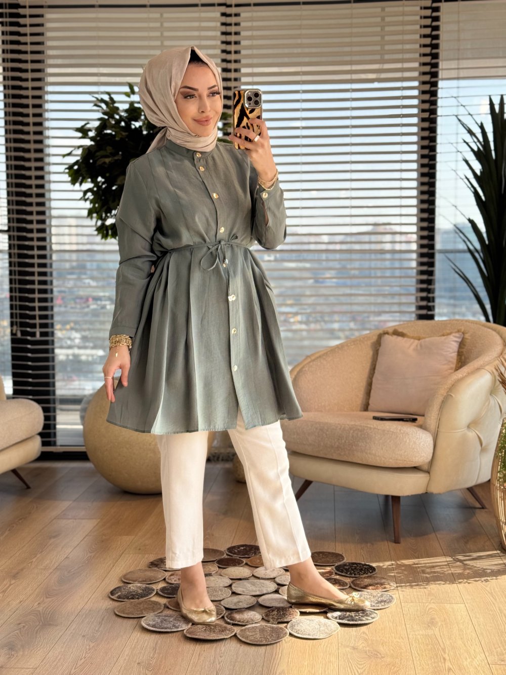 4475 Ön Dikiş Pile Detaylı Tunik Haki