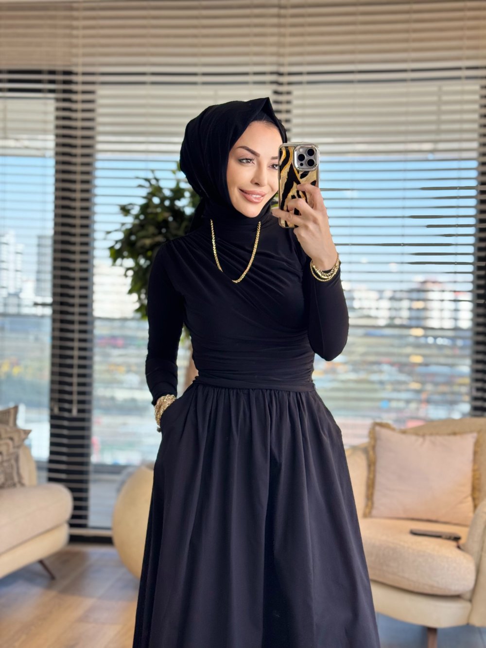 5020 Koton Beli Lastikli Cepli Etek Siyah