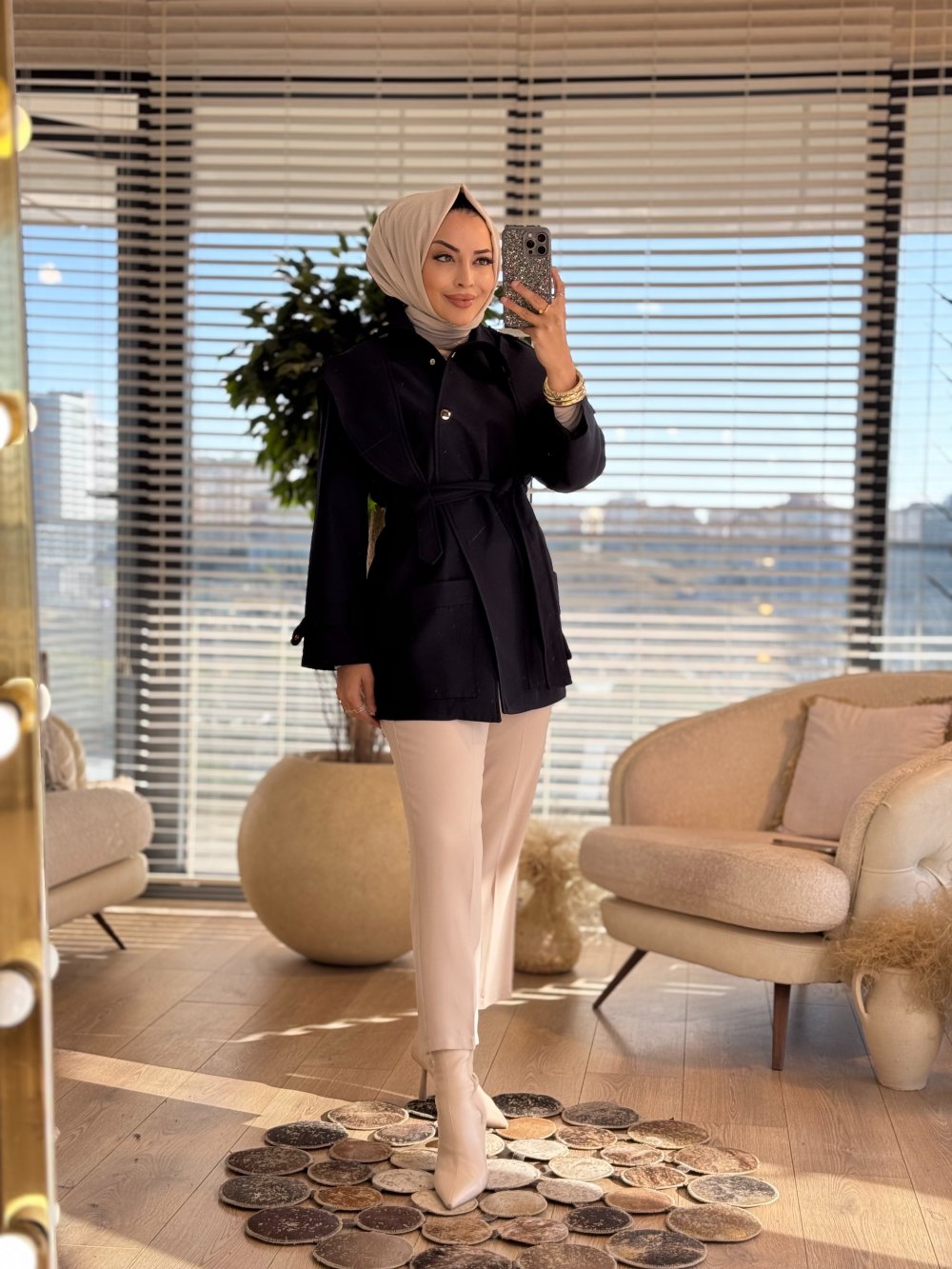 51198 Ön Oval Parça Apoletli Kısa Trenç Lacivert