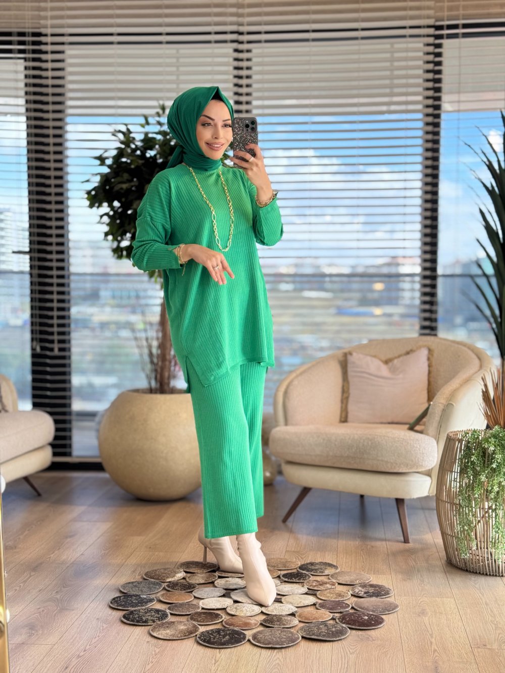 7016 Vanezia Fitilli Triko Pantolonlu Takım Zümrüt