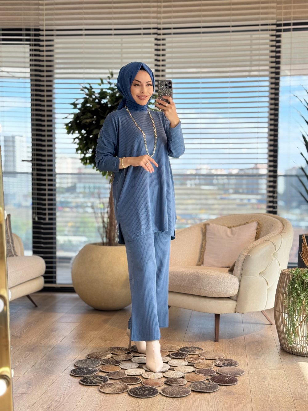 7016 Vanezia Fitilli Triko Pantolonlu Takım İndigo
