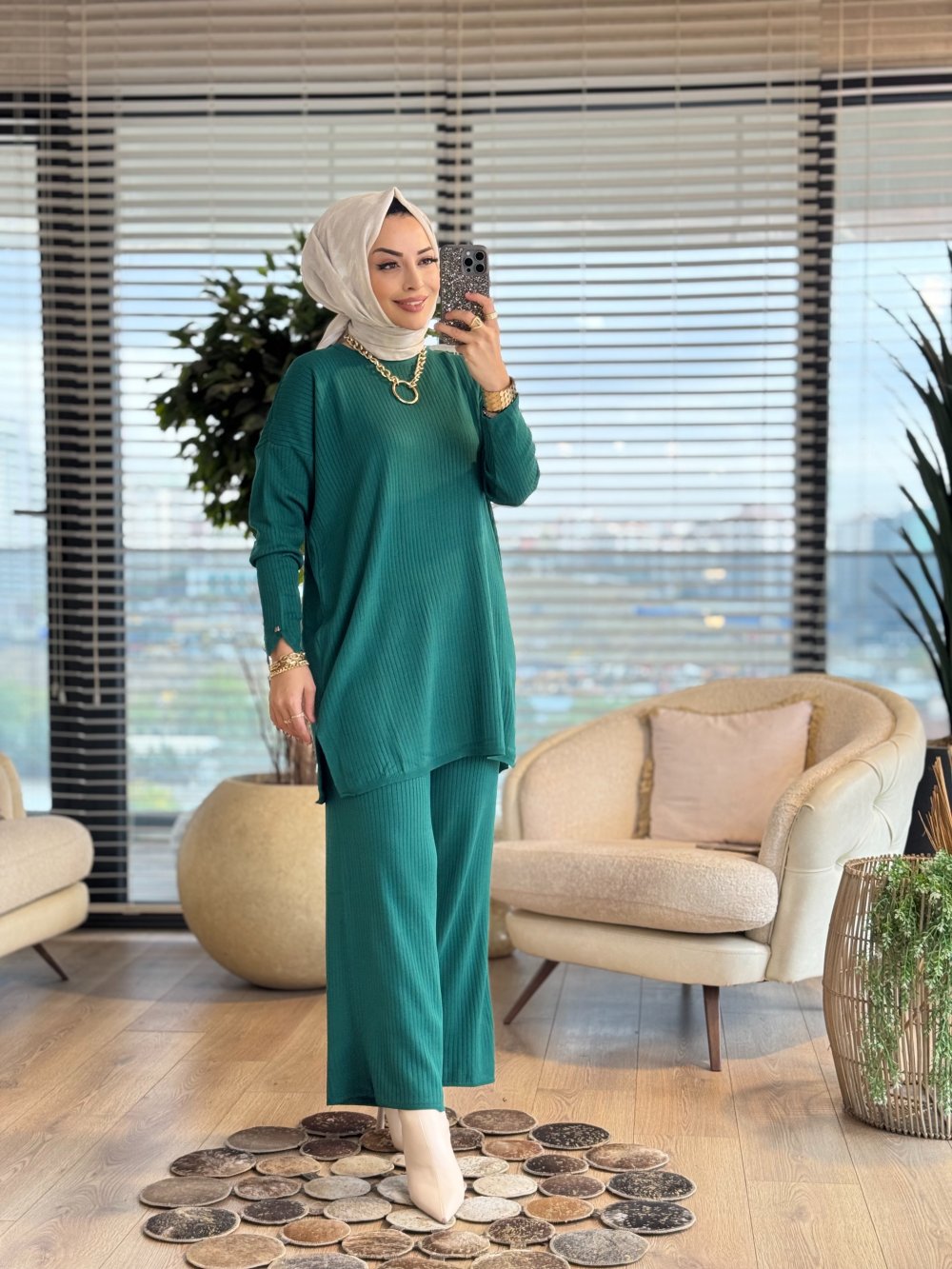 7016 Vanezia Fitilli Triko Pantolonlu Takım Zümrüt