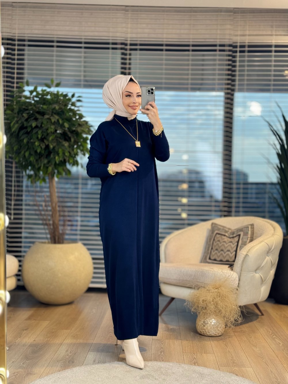 7017 Öpücük Yaka Vanezia Elbise Lacivert